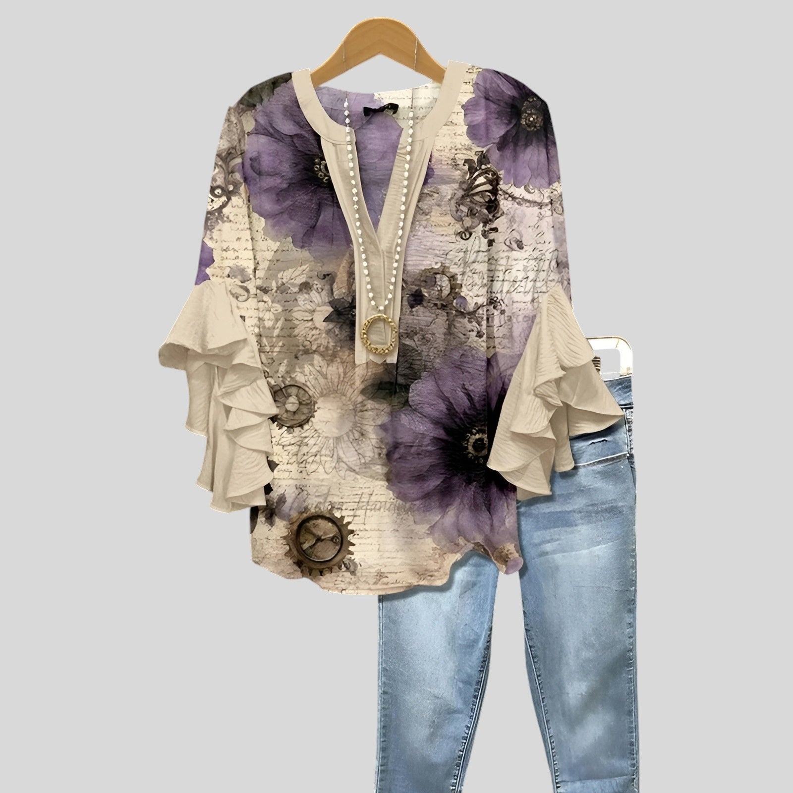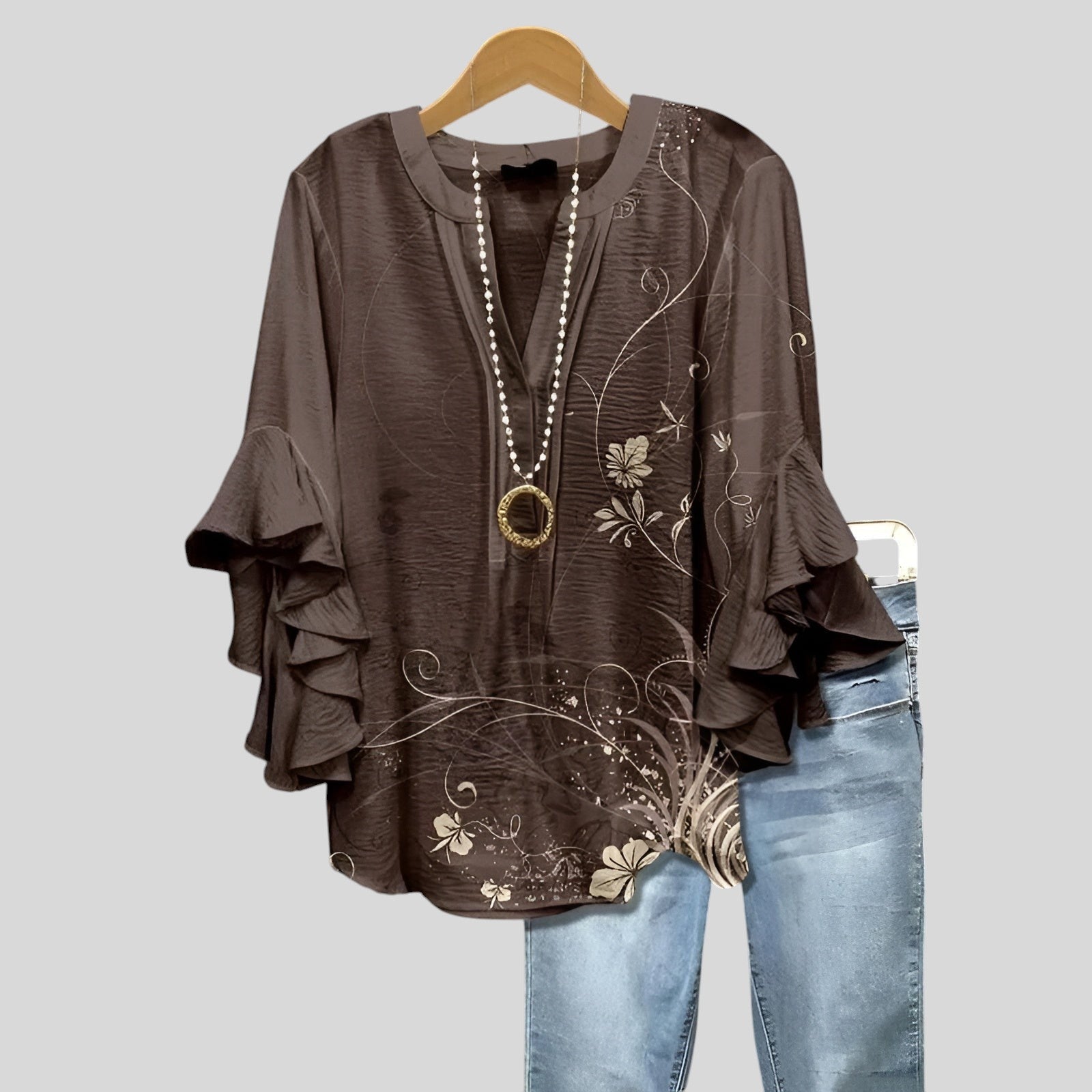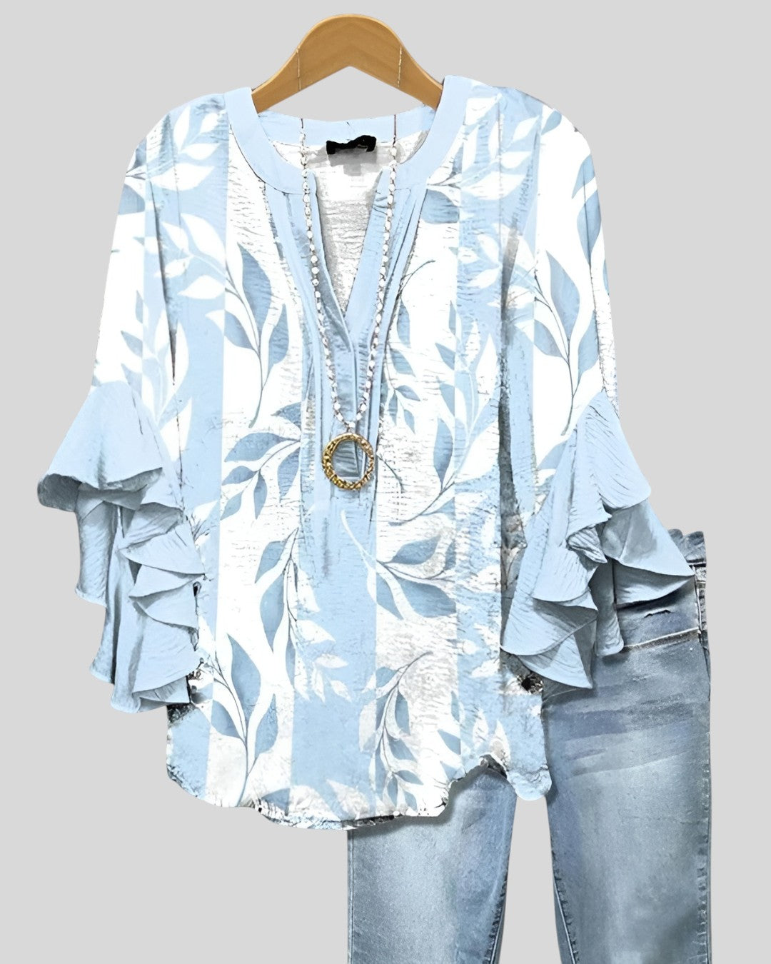 Iara™ - Blusa Estampada com e Mangas de Folhos