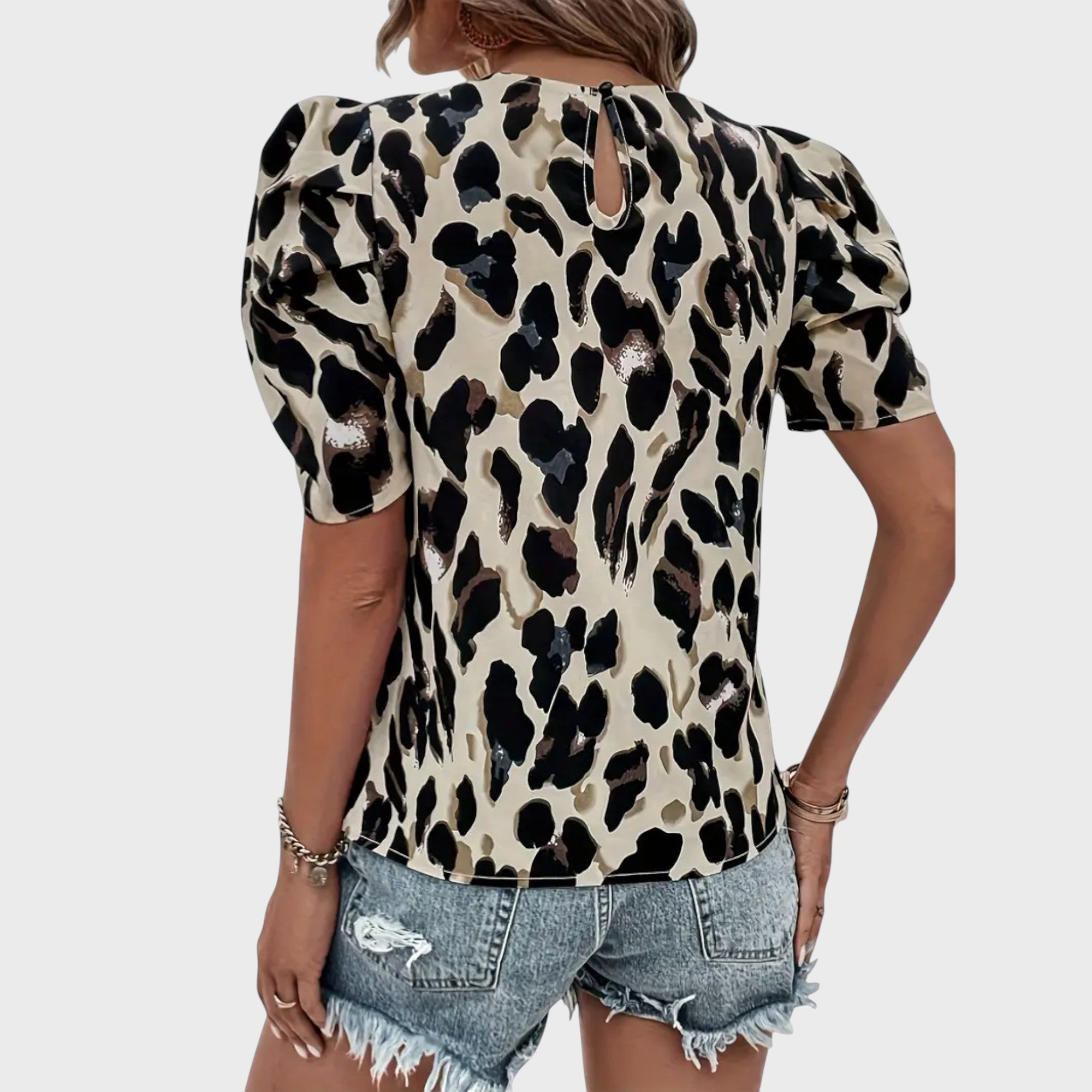 Micaela™ - Blusa Leopardo e Mangas Balão