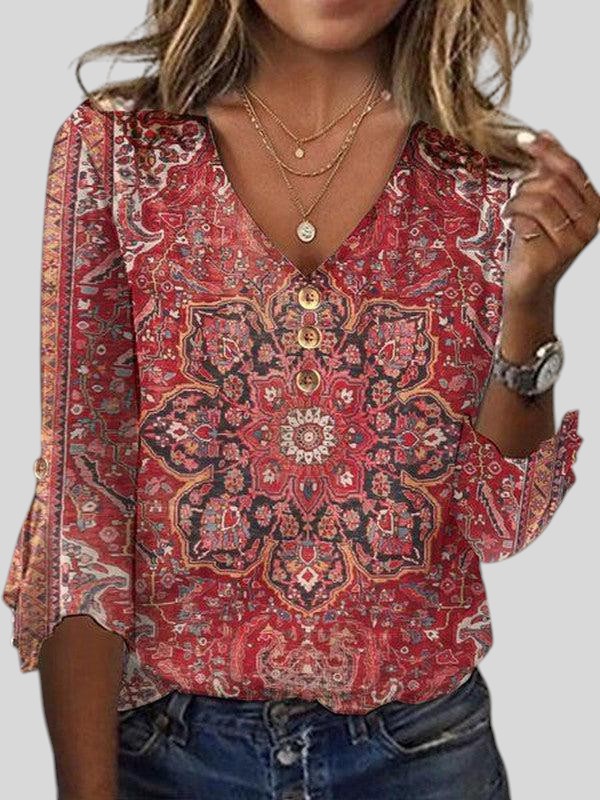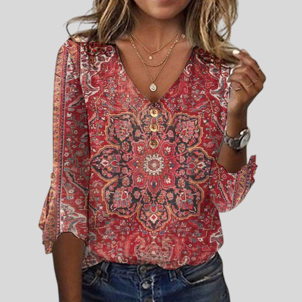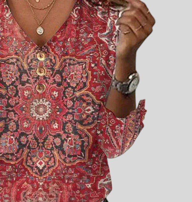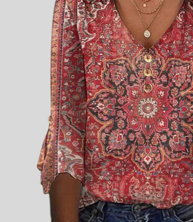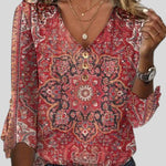 Odete™ - Blusa Estampada Estilo Boho com Decote em V