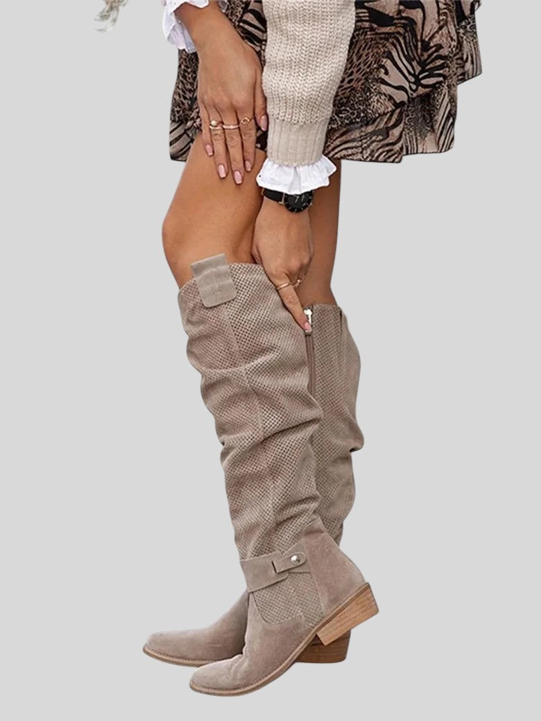 Descubra a combinação perfeita entre estilo clássico e conforto com as nossas elegantes botas de cano alto. Concebidas para realçar a sua silhueta, estas botas são ideais para qualquer ocasião e conferem um toque de sofisticação e confiança a qualquer conjunto ou look, desde a elegância casual até eventos mais formais.