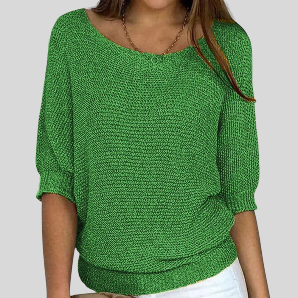 Fátima™ - Camisola casual com decote redondo e mangas três quartos