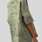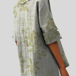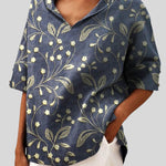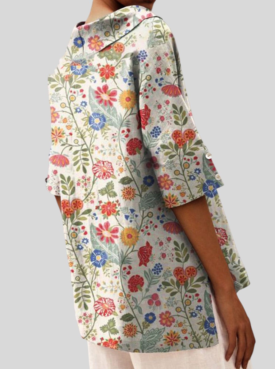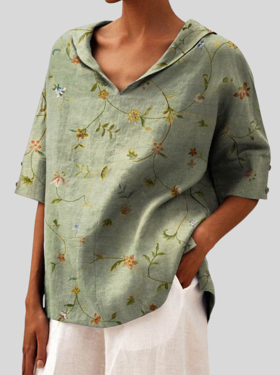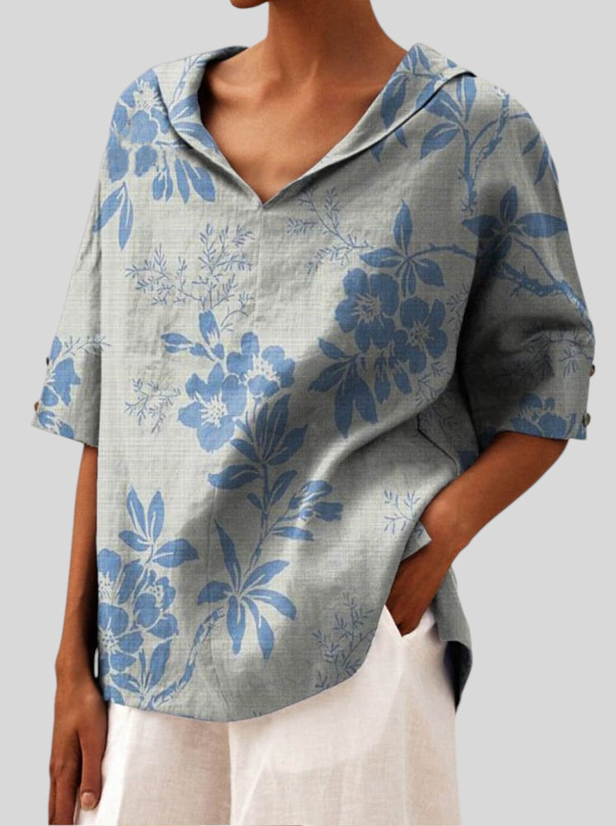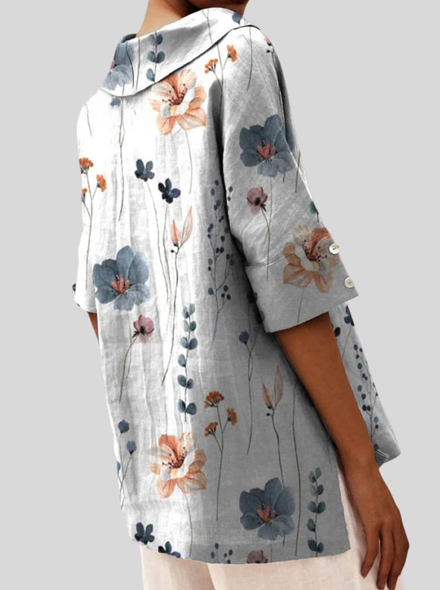 Esta blusa é uma ode à simplicidade e ao conforto natural. Com um tecido feito de linho, o que lhe confere um aspeto ligeiramente texturizado e descontraído, sendo ideal para um look casual e elegante.
