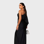 Deixe a elegância luxuosa encontrar o design arrojado com este impressionante vestido. Esta peça é a definição de um look de festa moderno e glamouroso, combinando o brilho sutil do cetim com uma silhueta dramática. É o modelo perfeito para galas, eventos formais ou qualquer ocasião onde queira um estilo inesquecível e distinto. Adicione uma presença poderosa e chique ao seu guarda-roupa.