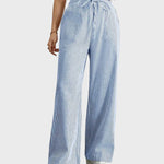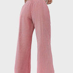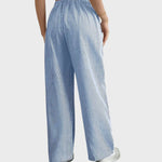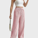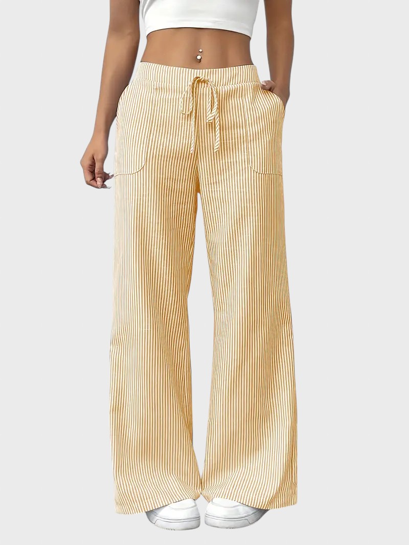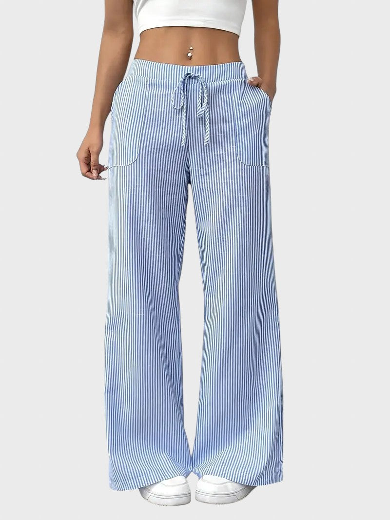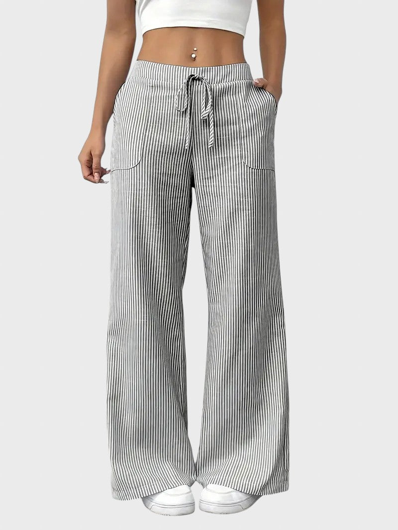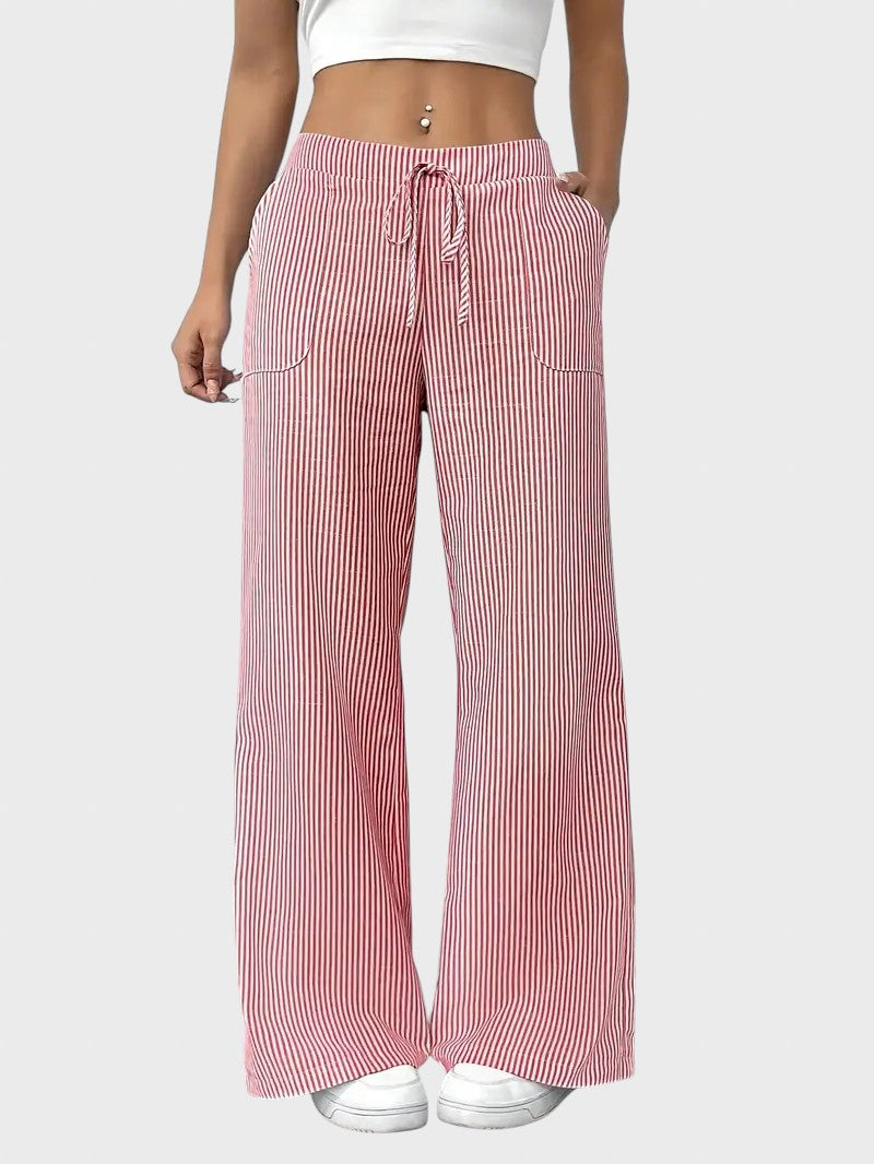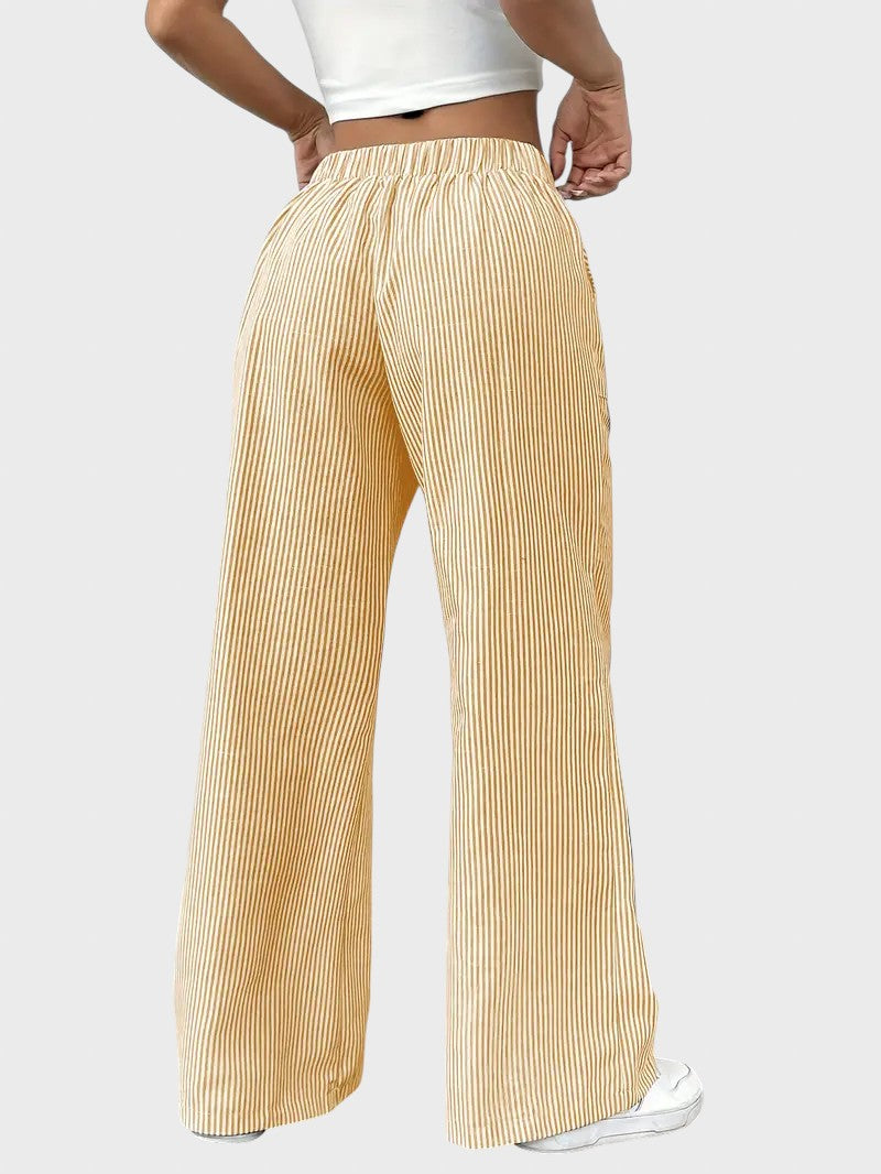 Ideal para os dias mais quentes, estas calças combinam o frescor de um tecido leve com um padrão clássico de listras. É a peça perfeita para criar looks descontraídos, resort-chic e extremamente confortáveis, garantindo um visual elegante com o mínimo esforço.