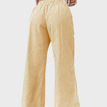 • Ajuste Clássico e Elegante: As riscas verticais e o corte de perna larga alongam e afinam visualmente. Com cintura alta e design pensado para realçar as curvas, estas calças vestem bem em todos os corpos, com estilo e naturalidade. Os bolsos frontais discretos são práticos, integrados e prontos para facilitar a tua rotina.