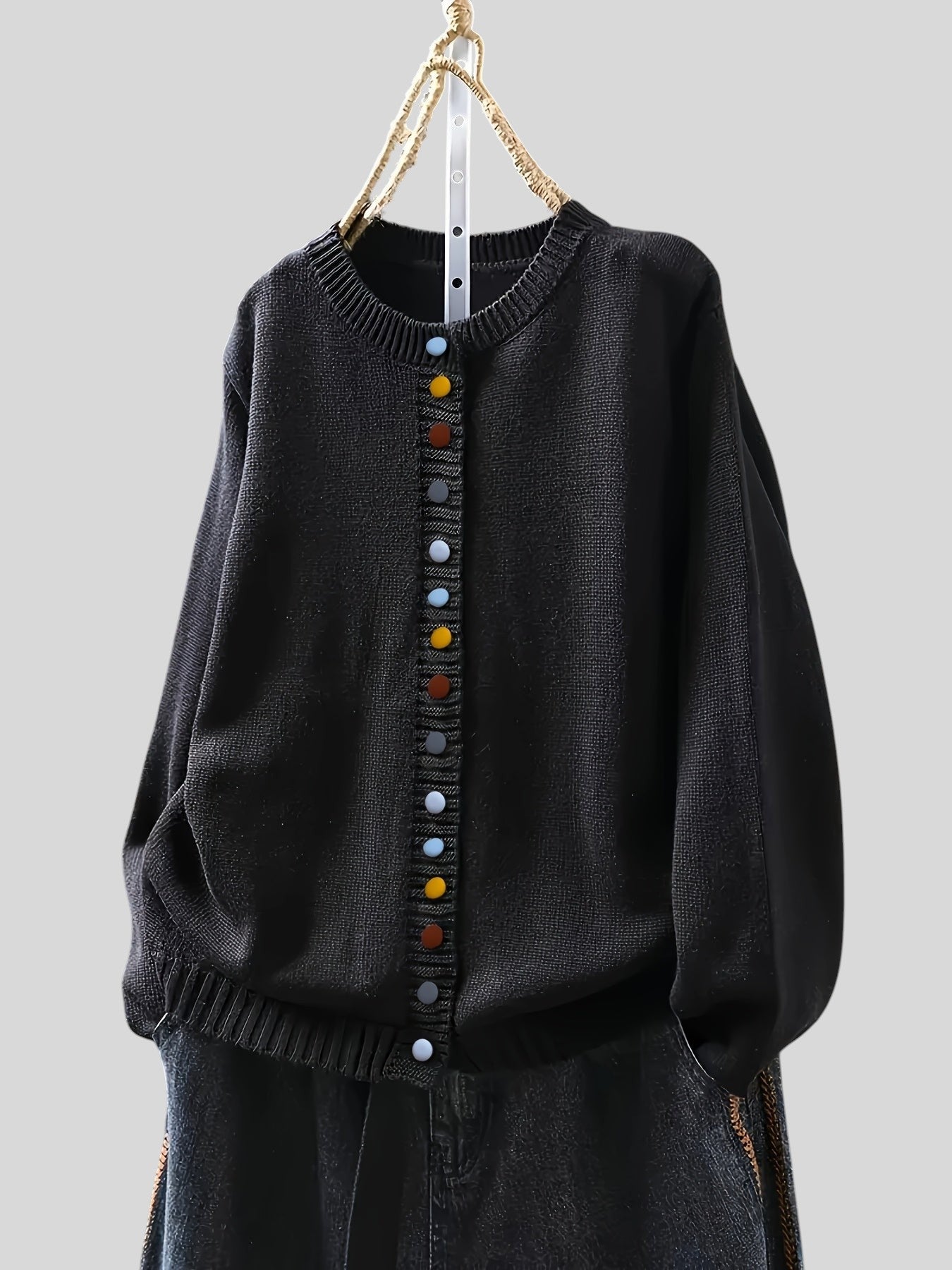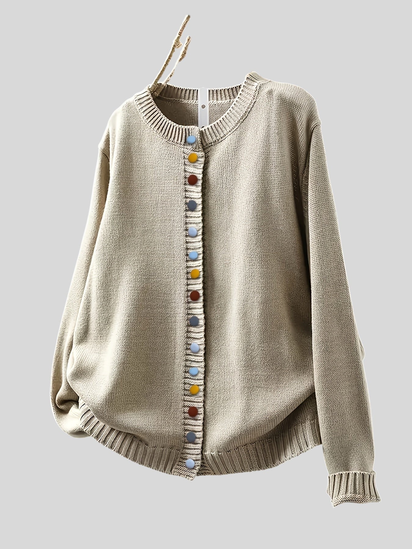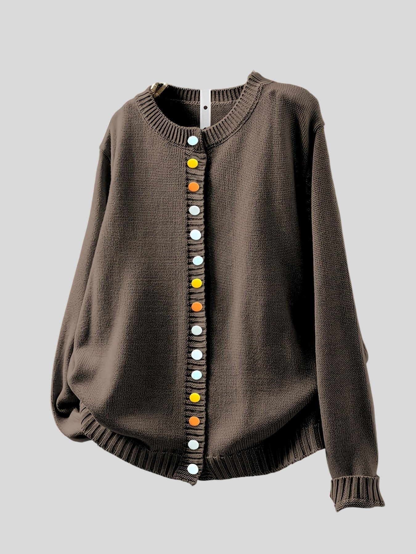 Descubra a combinação perfeita de conforto e elegância com este casaco com um design intemporal com botões decorativos que adicionam um toque feminino e pessoal. O corte largo garante conforto durante todo o dia e é ideal para momentos de descontração.