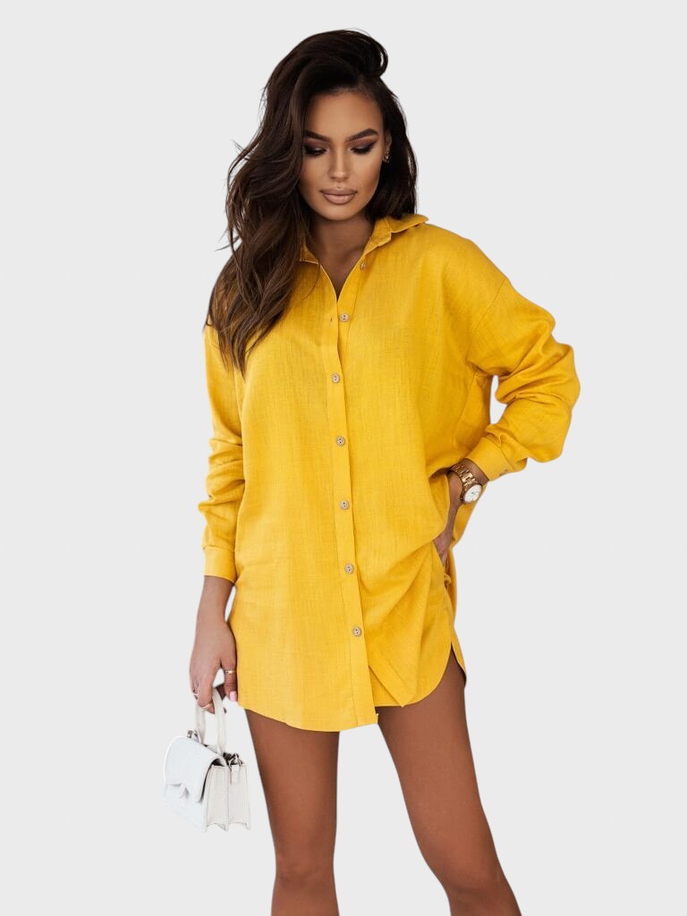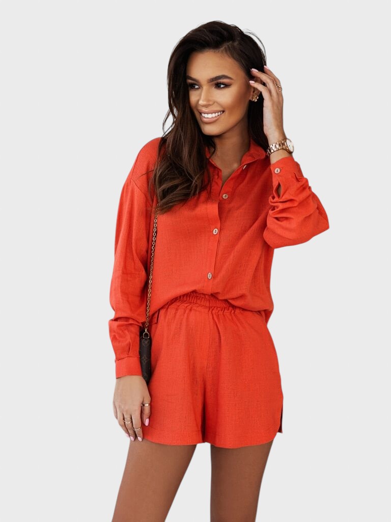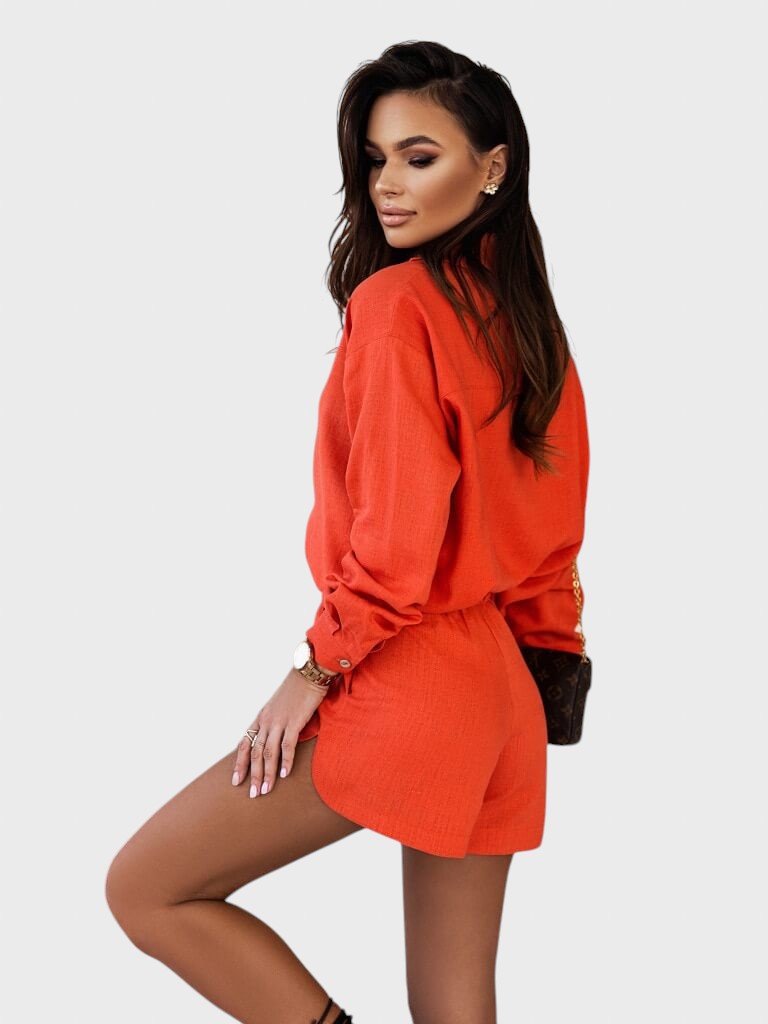 • Versátil para qualquer ocasião: A grande vantagem é a versatilidade de ter duas peças. A camisa pode ser usada como casaco leve sobre um top neutro ou bikini, e os calções ficam ótimos com uma t-shirt básica. Isso multiplica as opções de outfits para a sua mala de viagem.