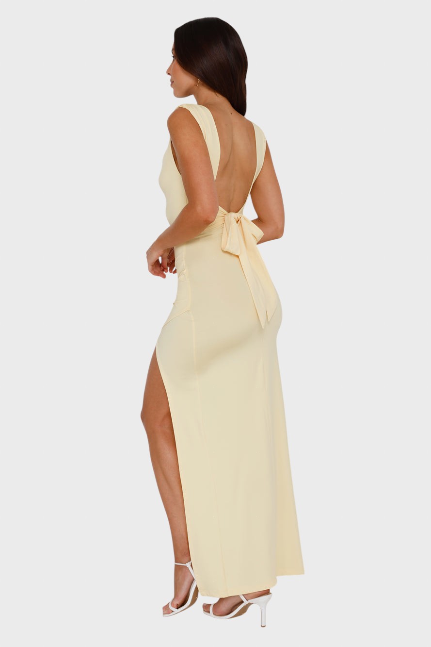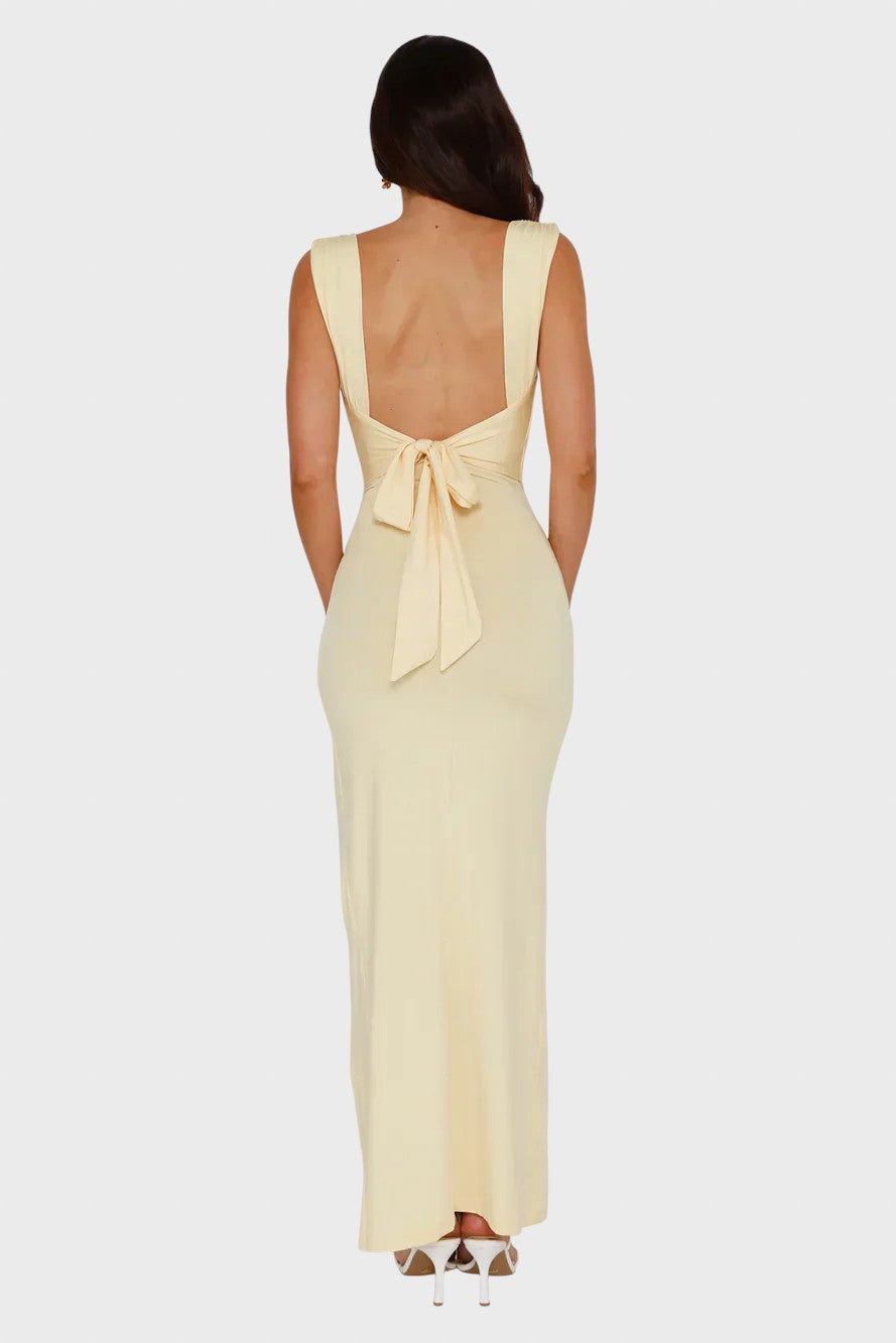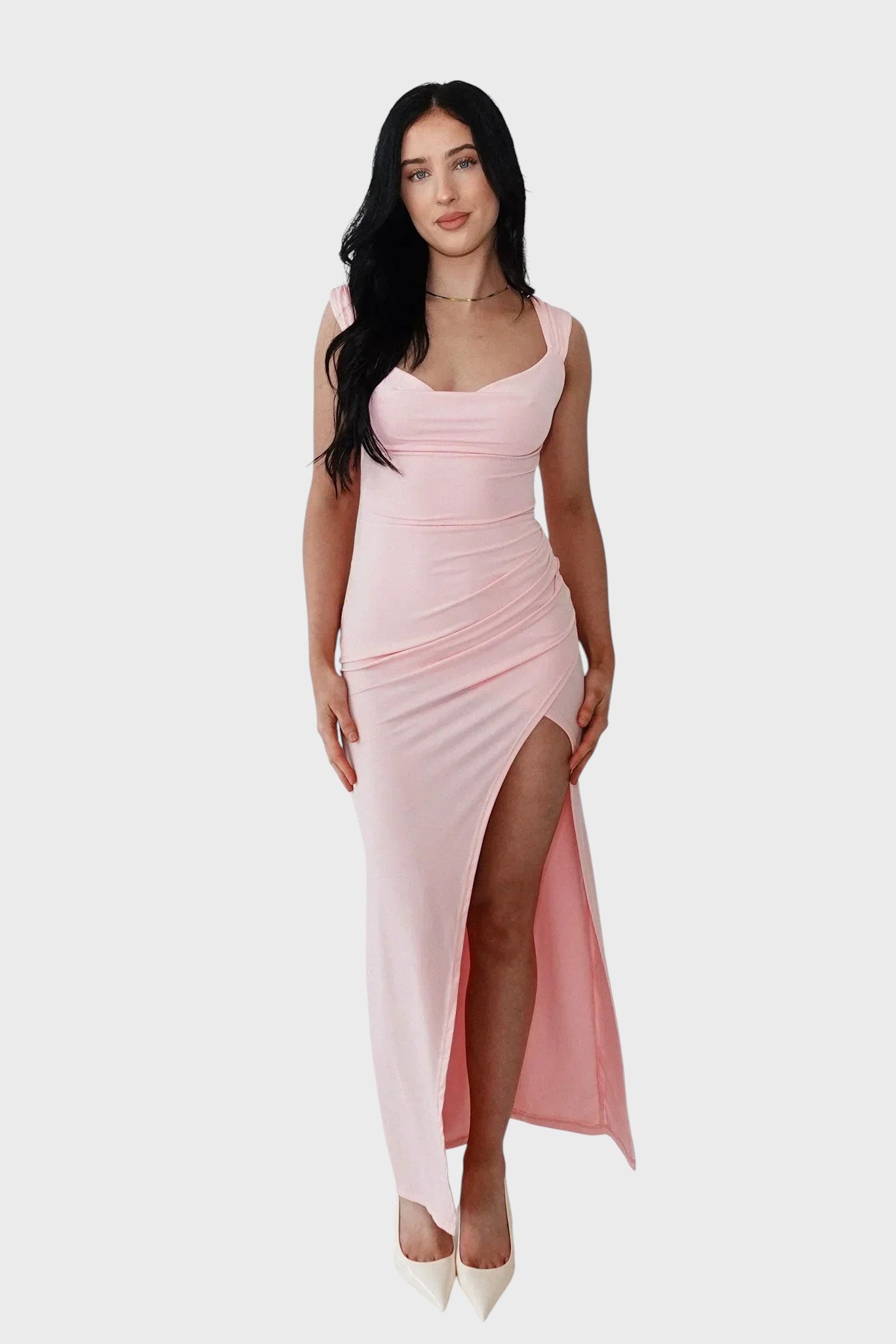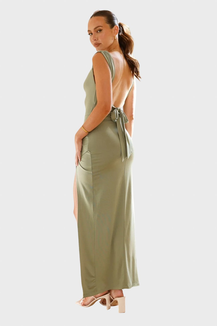 Deixe a elegância discreta encontrar a confiança sedutora com este deslumbrante vestido. Esta peça é a definição do chique minimalista, para quem procura um look que transpire sofisticação e glamour sem esforço, sendo perfeito para casamentos, ou jantares importantes. Adicione uma aura de requinte e modernidade ao seu guarda-roupa.