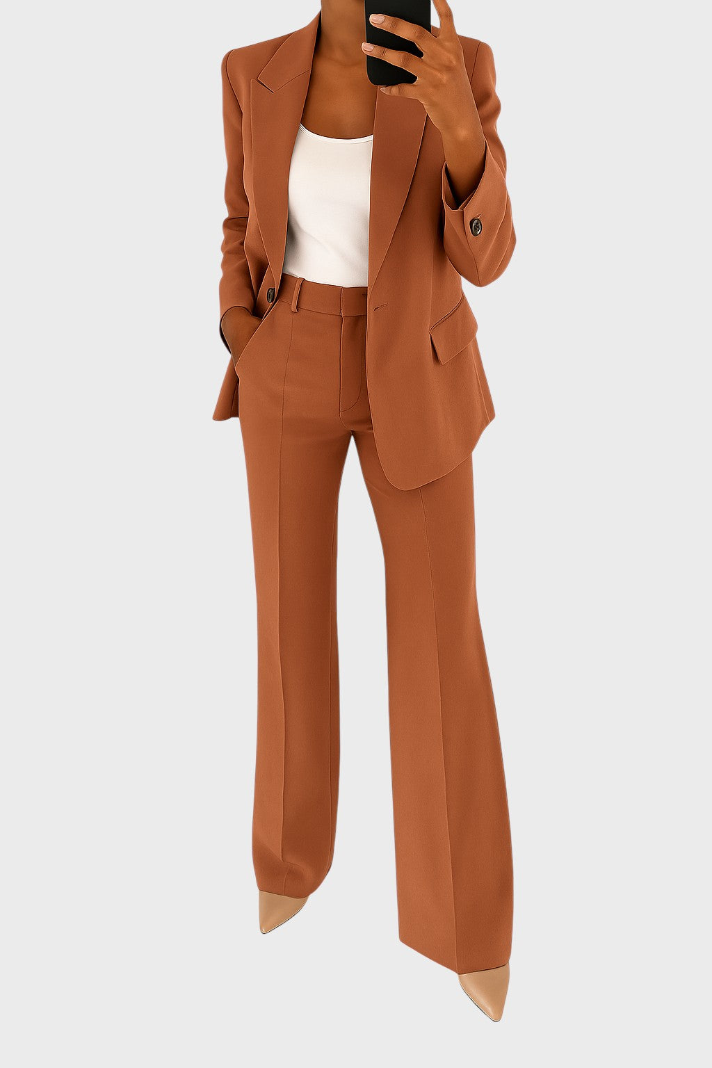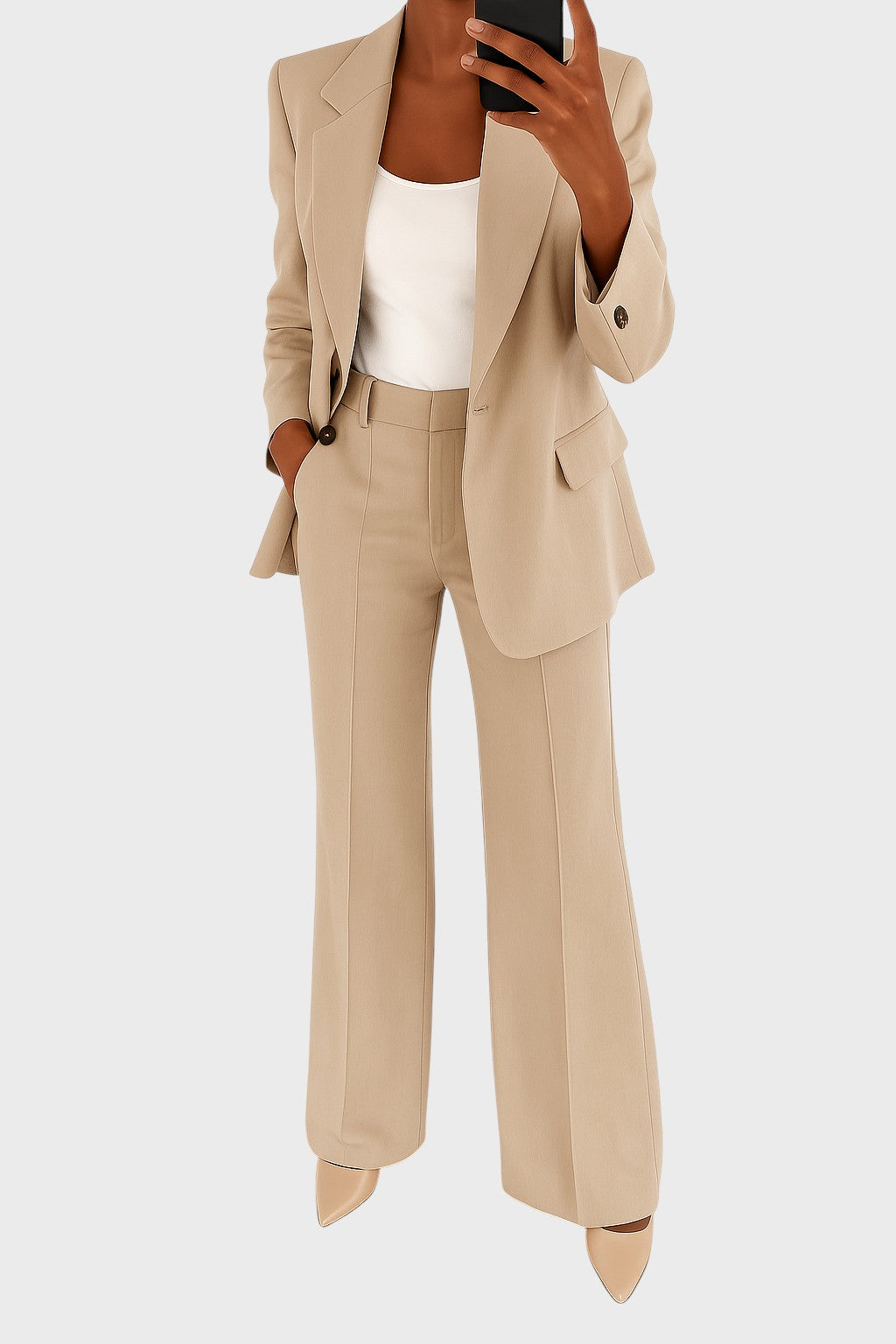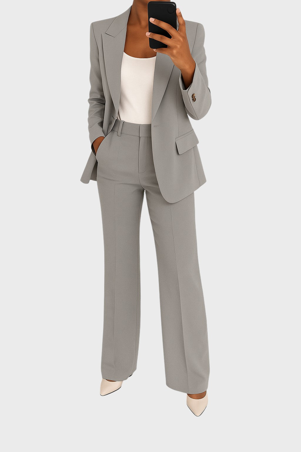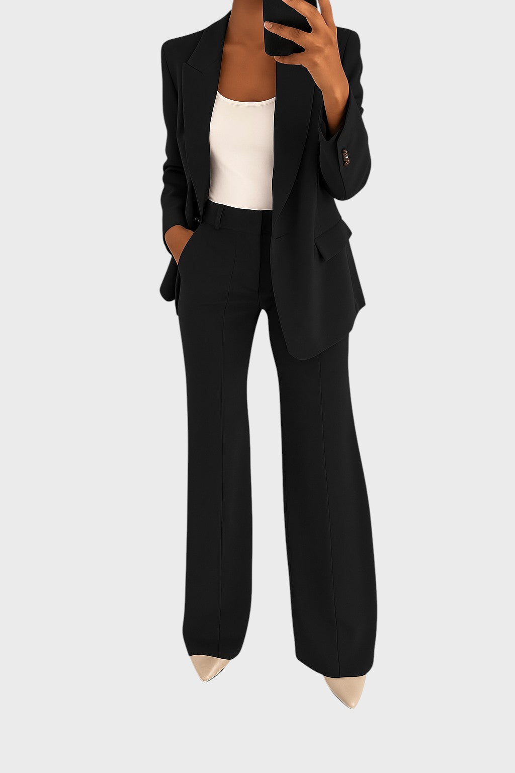Descubra a combinação perfeita entre charme clássico e conforto moderno com este fato elegante. Ideal para usar durante todo o dia, confere uma sofisticação inegável a qualquer ocasião, desde o escritório formal até aos eventos sociais mais importantes.
