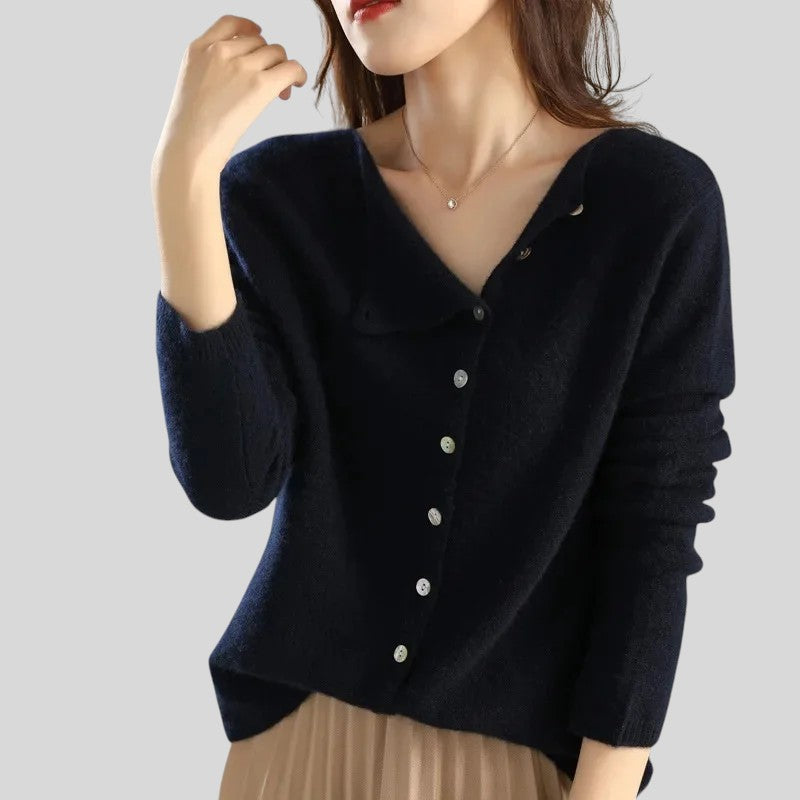 • Elegância clássica: Com a sua malha fina e botões elegantes, combina um estilo intemporal com um toque de sofisticação.
