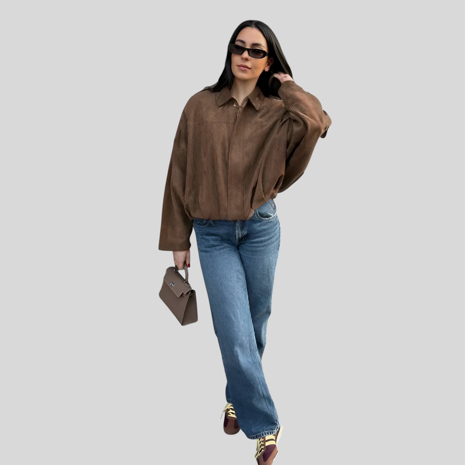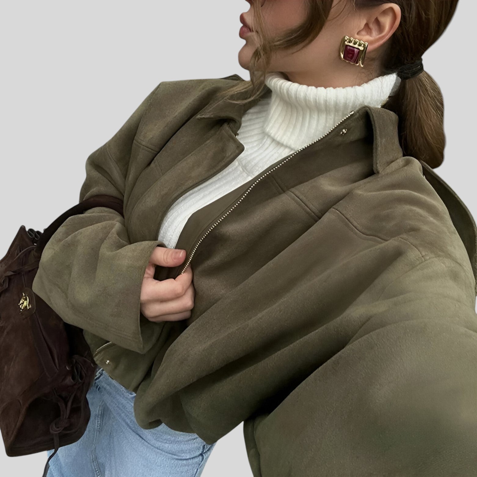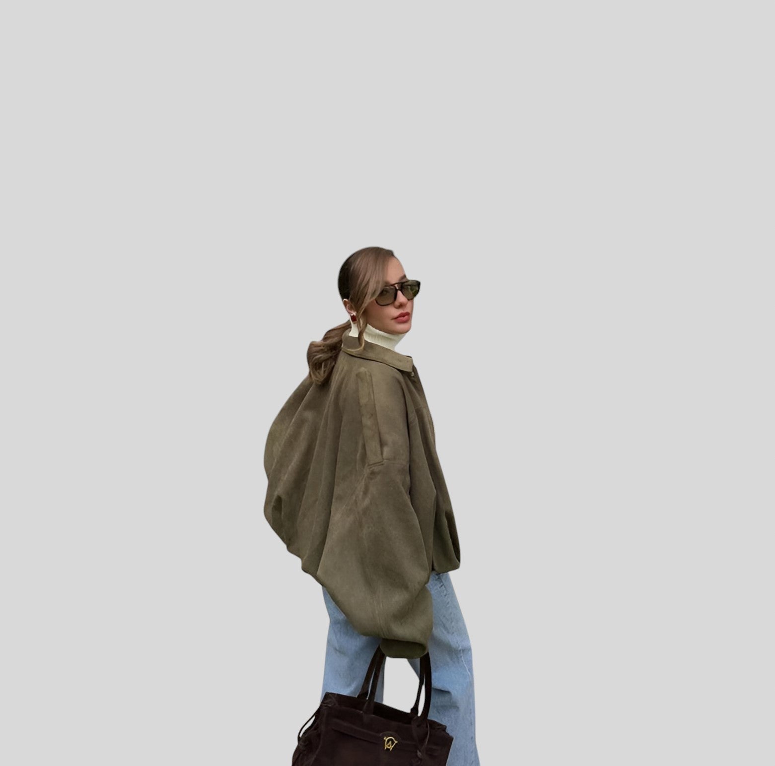 Deixe o conforto descontraído encontrar a elegância tátil com este moderno casaco Oversize em Camurça. O material macio e confortável e as linhas simples conferem-lhe um caráter intemporal, enquanto o corte mais largo garante liberdade de movimentos. É a escolha perfeita para escapadelas pela cidade ou para looks elegantes do dia-a-dia.