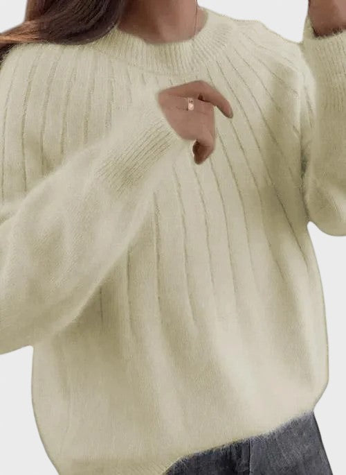 Georgina™ - Camisola de gola redonda com gola felpuda