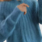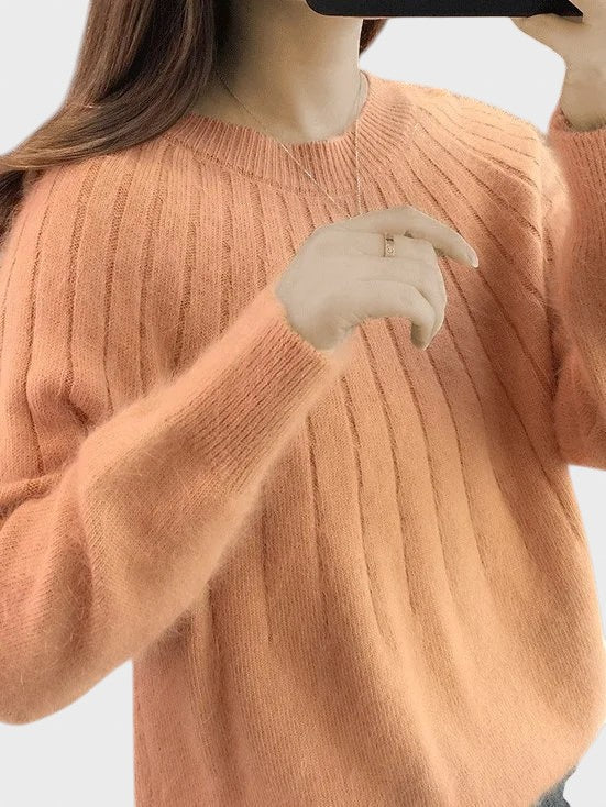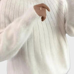 Abrace o conforto e a elegância minimalista com esta camisola de malha. Feita com um fio que confere um suave efeito de pêlo, esta peça é o que se chama o luxo do aconchego para os dias mais frios, adicionando uma textura rica e um brilho delicado ao seu look.