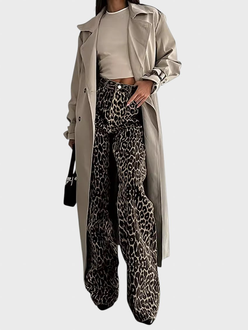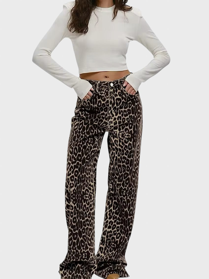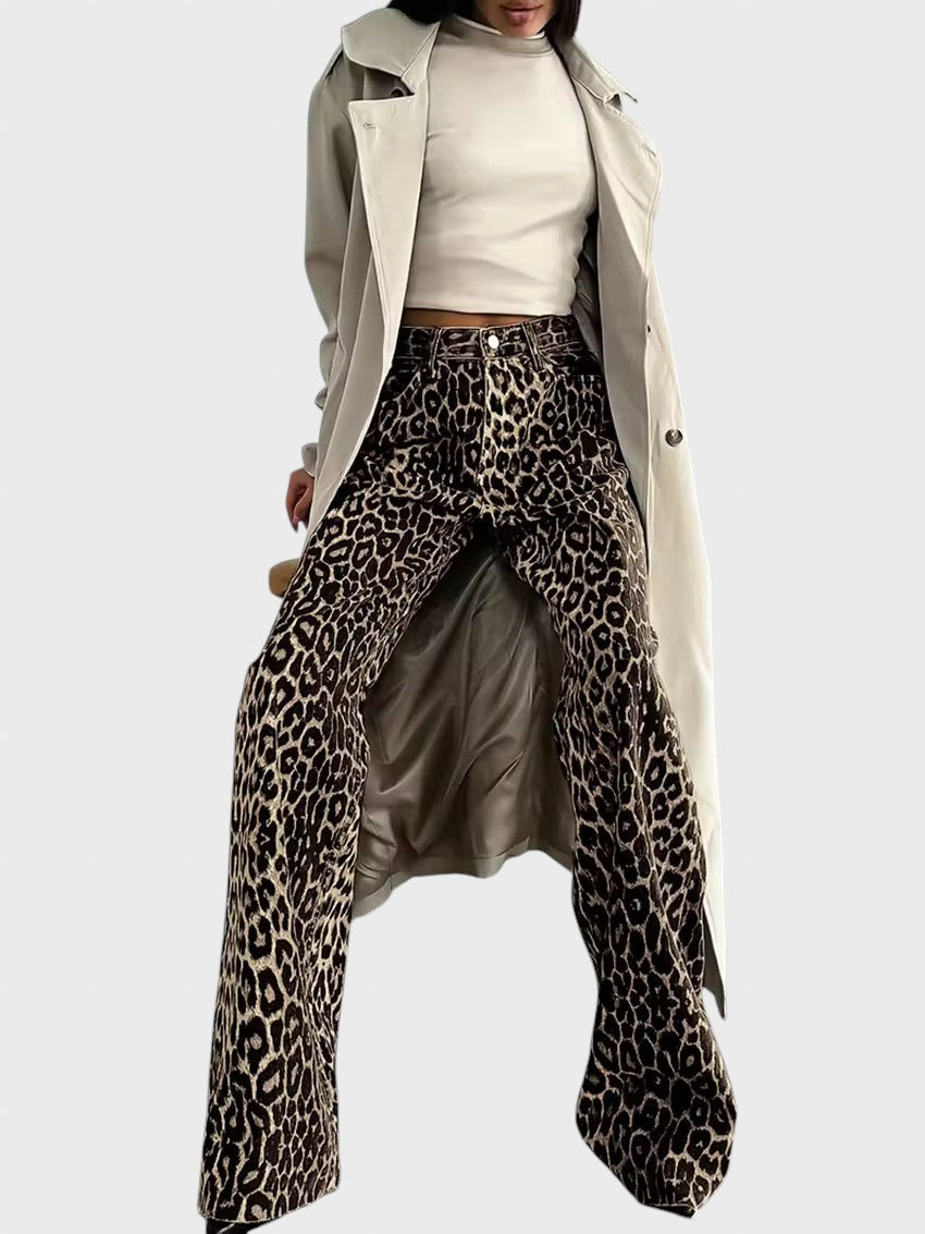 Graça™ - Calças de ganga padrão leopardo