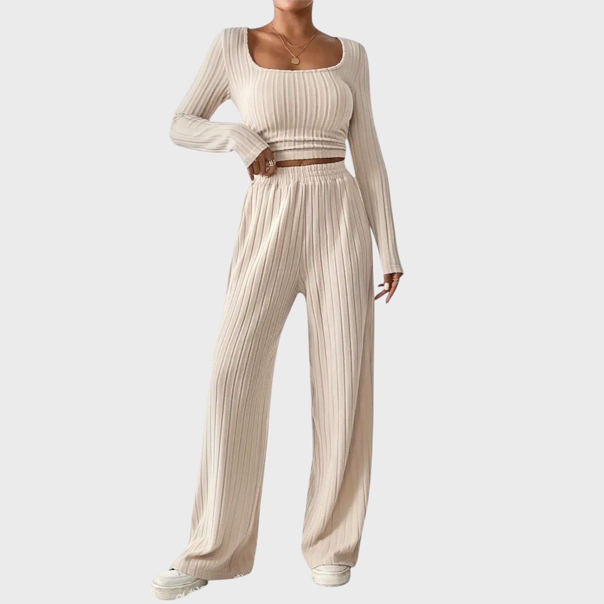O conjunto feminino da nossa coleção de outono/inverno combina elegância intemporal com modernidade descontraída. Este conjunto de duas peças é uma necessidade para mulheres na moda que valorizam conforto e estilo.