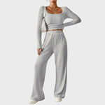 • Design: As mangas longas do crop-top adicionam um toque feminino ao seu visual. O corte elegante realça a sua silhueta e cria uma declaração de estilo, ideal para dias frios. As calças soltas oferecem o máximo conforto e liberdade de movimento. A cintura alta valoriza a silhueta e completa harmoniosamente o look.