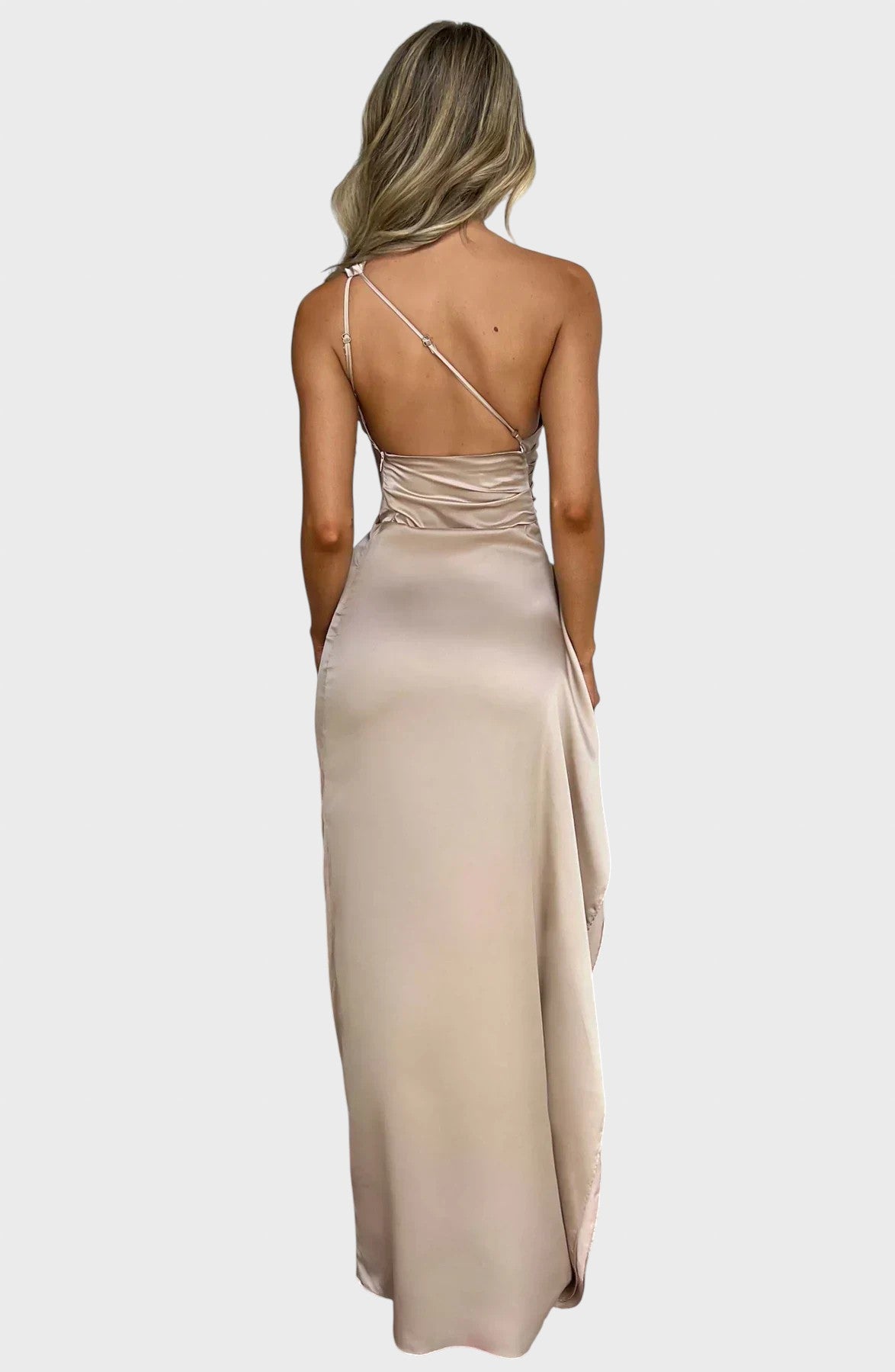 Uma obra-prima de sofisticação refinada. Com a sua silhueta fluida e detalhes graciosos, este vestido irradia elegância em cada ocasião. Seja para um evento formal ou uma noite de saída, você irá irradiar charme e confiança.