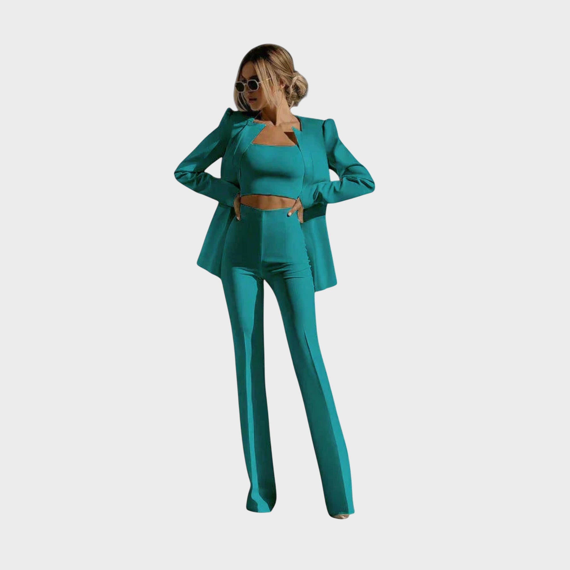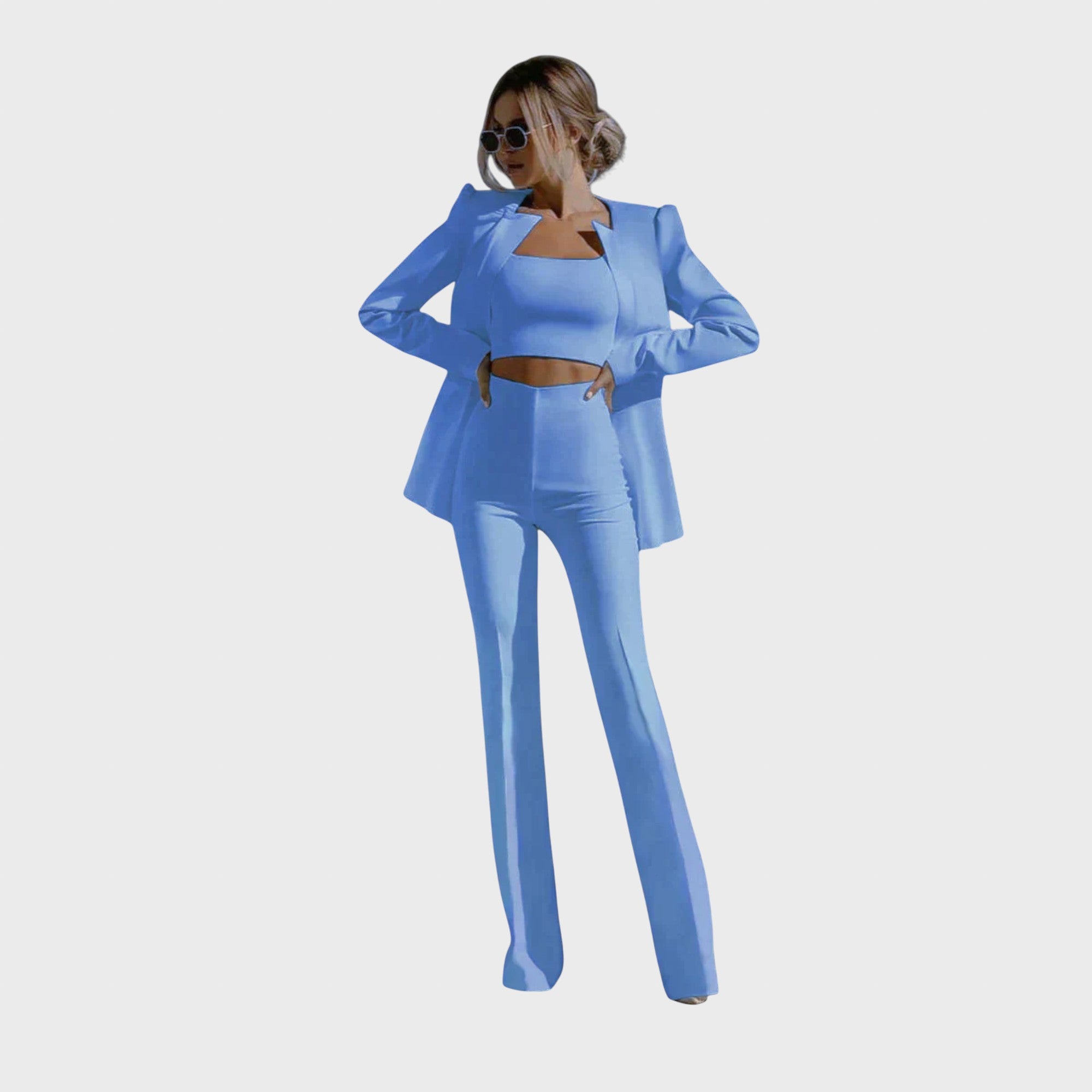 Este conjunto estiloso de três peças inclui um blazer trendy, um top elegante e calças confortáveis, ideal para enfrentar o seu dia com estilo. Seja para o escritório ou um jantar descontraído, o conjunto Núria combina máximo conforto com um estilo único!