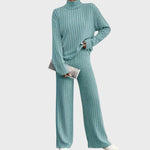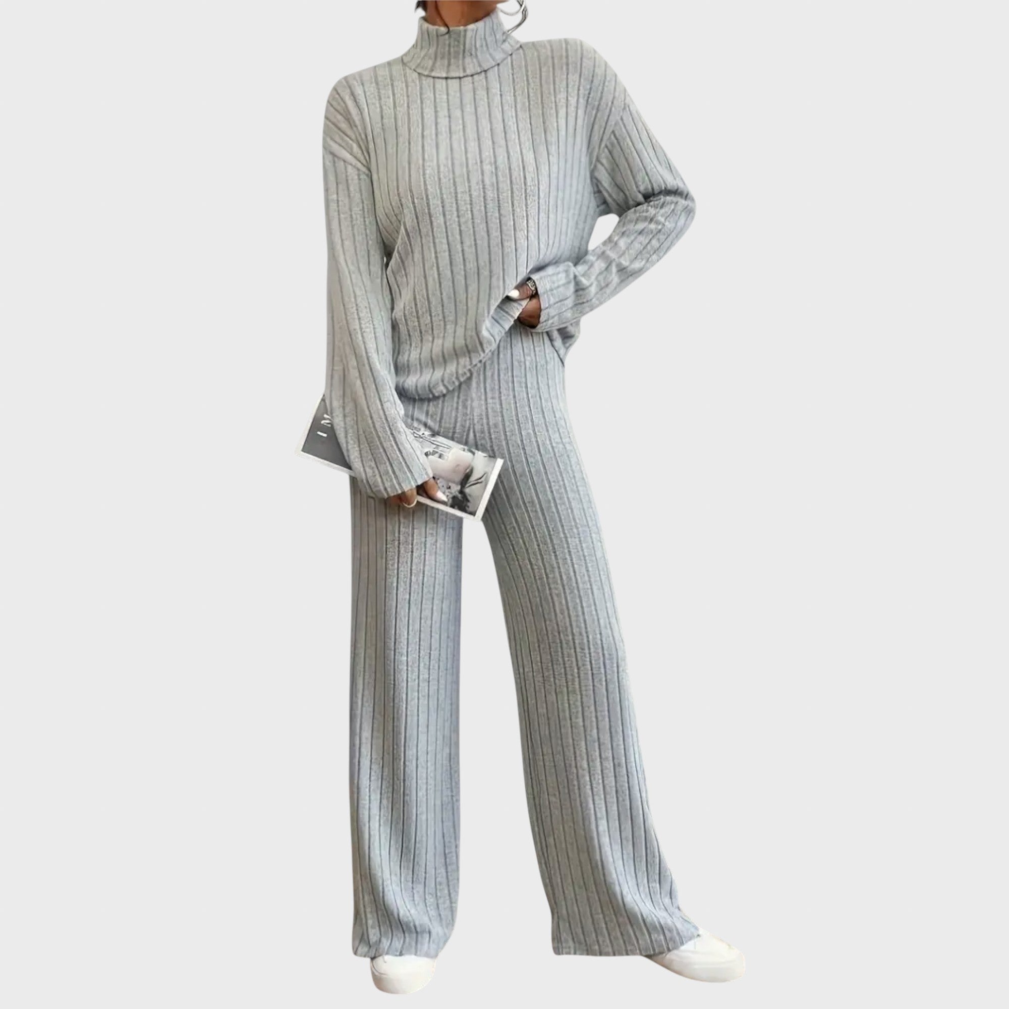 Descubra a atemporalidade do casual com este conjunto em malha canelada. Este elegante outfit combina conforto e estilo, sendo ideal para mulheres conscientes da moda que valorizam detalhes discretos e looks versáteis.