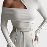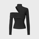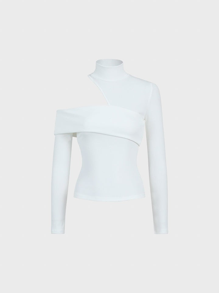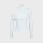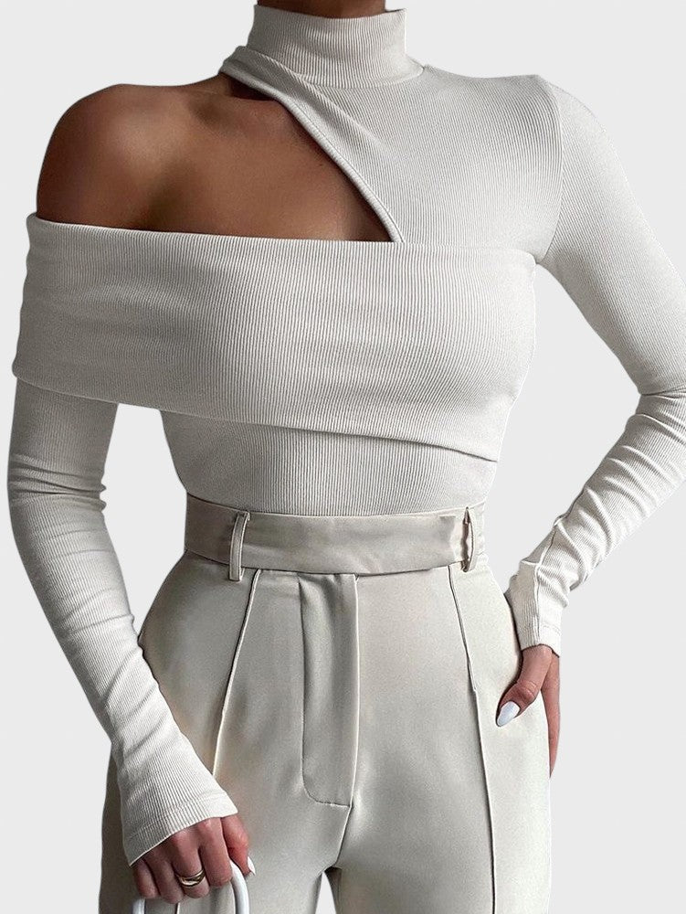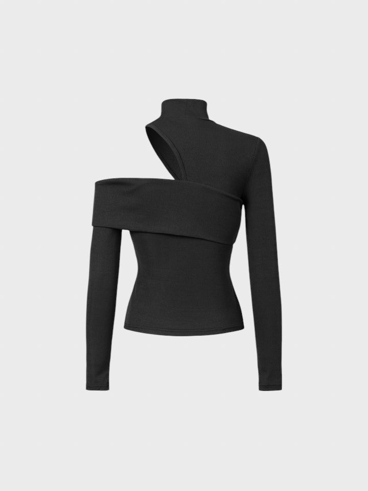 Prepare-se para elevar o nível do seu look com esta peça statement que funde ousadia e sofisticação. Esta camisola redefine o conceito de sensualidade moderna. Com a sua gola alta contrastando com recortes estratégicos no ombro e decote, é a escolha perfeita para quem deseja um visual contemporâneo e extremamente chique.